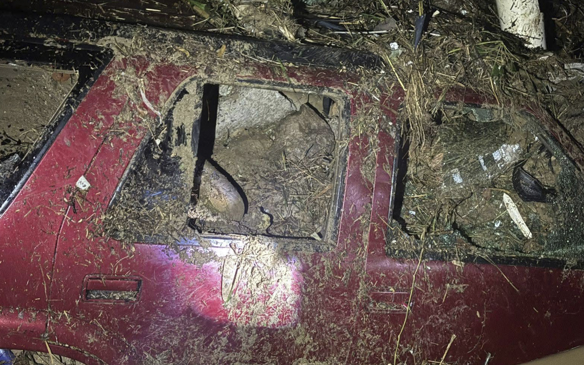 Desafortunadamente, la unidad fue superada por la fuerza del agua, quedando atrapada y sepultada entre lodo y ramas.